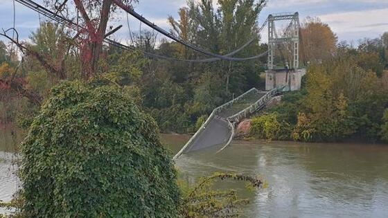 ТАСС, 18 ноября. Грузовик и легковой автомобиль в понедельник упали в реку Тарн к северо-востоку от города Тулуза в результате обрушения моста. Об этом сообщает газета La Dépêche du Midi. По ее данным, в результате инцидента погиб 15-летний подросток. Отмечается, что обрушение могло произойти из-за того, что грузовик превысил разрешенную массу для проезда по этому мосту. Согласно знакам, установленным перед въездом на мост, ограничение массы автомобиля составляет 19 т. В сообщении пожарных служб департамента Верхняя Гаронна, опубликованном в Twitter, отмечается, что "на месте инцидента работают около 80 пожарных и спасателей". Также в операции задействованы несколько команд дайверов, три вертолета. Жителям города рекомендуется избегать места ЧП. Как отмечает телеканал BFM, подвесной мост в городе Мюрпуа-сюр-Тарн был возведен в 1935 году. В 2003 году, согласно информации местных властей, мост был реконструирован. Его длина составляет 152 м, ширина - 5 м.