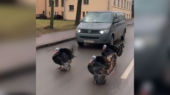 При первом же возмущении со стороны водителей птицы дружно начинали громко курлыкать. В Пушкине появились необычные нарушители ПДД: прямо посреди проезжей части оказалось трио индюков. Птицы не спеша переходили дорогу в неположенном месте. Когда справедливо возмутившиеся водители начали им сигналить, все индюки, как один, выразили недовольство громким курлыканьем. Ролик с невоспитанными «пешеходами» опубликовал в группе «ДТП и ЧП | Санкт-Петербург» один из свидетелей ситуации. Отметим, что до конца съемки индюки с проезжей части самостоятельно так и не удалились. Как другим участникам дорожного движения удалось избавиться от назойливой компании, неизвестно.