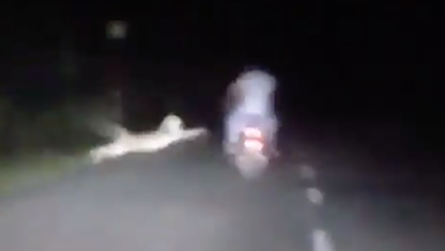 Сидевший на обочине дороги в Индии леопард неожиданно атаковал проезжавший мимо мотоцикл. Об этом сообщает сайт UPI. «Все ждали, пока настоящий хозяин дороги, леопард, перейдет, но мотоциклист хотел проехать. Это могла бы быть его последняя поездка. Пожалуйста, учитесь уважать дикую природу», — написал в Twitter автор видео — сотрудник индийской лесной службы Сусанта Нанда (Susanta Nanda). На записи видно, как леопард стоит на обочине дороги и бросается на приближающийся мотоцикл. Хищник совершил прыжок всего в нескольких сантиметрах от мотоциклиста и его пассажира и скрылся на противоположной стороне дороги. Другие машины, в том числе та, из которой было снято видео, остановились на безопасном расстоянии, чтобы пропустить животное.