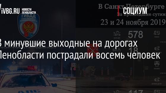 Всего за минувшие выходные, 23 и 24 ноября, на дорогах Петербурга и Ленобласти произошло 695 ДТП. Согласно статистике, которую опубликовала пресс-служба ГУ ГИБДД по Петербургу и Ленобласти, за минувшие выходные на дорогах Ленобласти зафиксировано 117 ДТП, в которых пострадали восемь человек. Обошлось без жертв. В Петербурге за этот период произошло 578 ДТП, раненными оказались 18 человек, в том числе три ребенка. Один человек погиб.