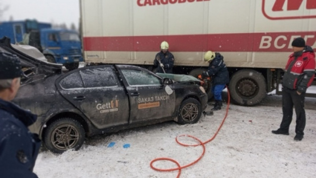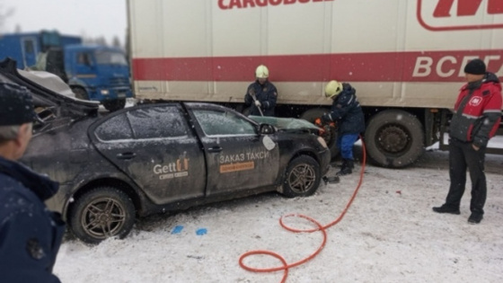 В Самарской области срезали крышу такси, которое влетело в фуру с едой