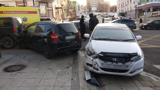 Фото: в центре Владивостока произошло массовое ДТП, есть пострадавшие