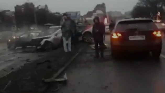Видео массовой аварии в Санкт-Петербурге появилось в Сети