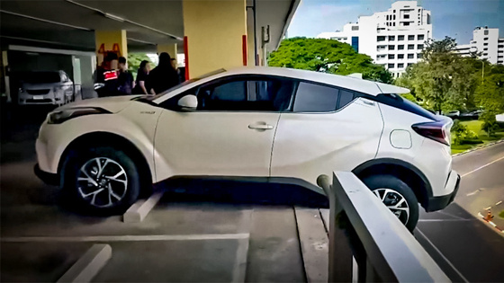 Водительница Toyota C-HR перепутала педали и чудом не рухнула с 15-метровой высоты вместе с автомобилем, который безуспешно пыталась припарковать. Инцидент произошел на парковке в городе Нонхтабури в Таиланде еще в конце ноября, однако видео инцидента появилось только сейчас. К счастью, автоледи опомнилась и отпустила педаль газа достаточно быстро, так что Toyota осталась на весу – еще момент, и все могло закончиться далеко не так анекдотично. На записи видно, как к застрявшему автомобилю подбегают взволнованные очевидцы, которые не сразу поняли, как помочь неудачливой водительнице и не усугубить ситуацию. В итоге с помощью подоспевших охранников и полицейских женщину все же удалось вызволить из балансирующего на краю автомобиля. Сообщается, что она отделалась легким испугом. А вот C-HR, которая, по словам пострадавшей, была совсем новенькой, ждет крупный ремонт: придется заменить крыло, дверь и зеркало заднего вида.