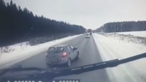 В Сети опубликованы кадры с регистратора, запечатлевшего момент аварии, произошедшей в пятницу, 6 декабря, на трассе Екатеринбург – Тюмень неподалеку от города Богданович в Свердловской области. Женщина, находившаяся за рулем автомобиля Hyundai, совершила обгон и вернулась в свою полосу, но не справилась с управлением. Легковушка сорвалась в занос и выскочила на встречную полосу, после чего столкнулась с фурой Volvo. От удара Hyundai откинуло обратно и в нее врезался грузовик МАЗ с щебнем. После аварии он выехал в кювет и опрокинулся. Легковушка тоже оказалась за пределами проезжей части. По данным госавтоинспекции Богдановичского района, водитель и пассажир легкового автомобиля Hyundai получили травмы различной степени тяжести и были госпитализированы. Напомним, что в минувший понедельник, 2 декабря, при схожих обстоятельствах на трассе в Татарстане погибли два человека. Авария, унесшая жизни женщины и ее дочери, попала на видео.