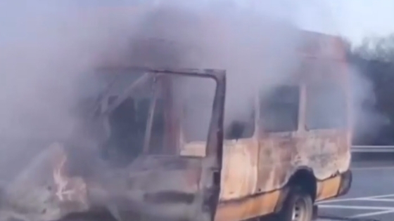 Под Новороссийском сгорел микроавтобус после ДТП (видео)
