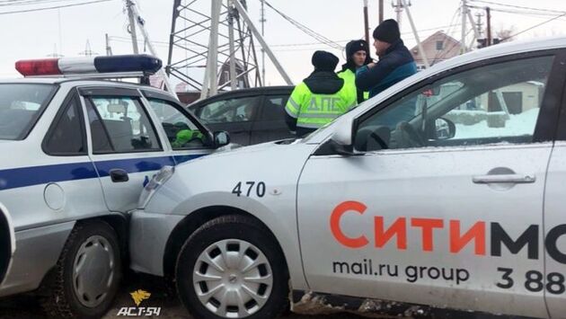 Такси и автомобиль ДПС столкнулись в Новосибирске