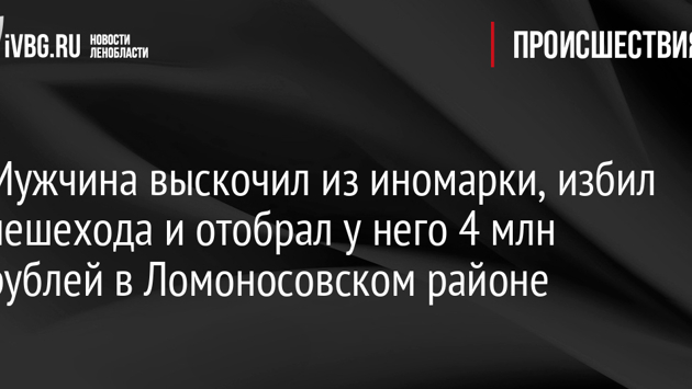 Мужчина выскочил из иномарки, избил пешехода и отобрал у него 4 млн рублей в Ломоносовском районе