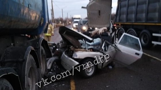 На воронежской трассе «ВАЗ» протаранил стоящий «КамАЗ»: погибла женщина