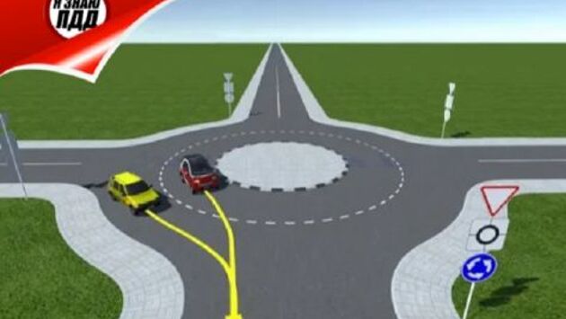 Наверное среди ваших знакомых найдется немало таких автолюбителей, которые стараются избегать сложных перекрестков и даже строят специальные маршруты. Давайте сегодня разберем дорожную ситуацию на перекрестке с круговым движением. На картинке мы видим два автомобиля: желтый и красный. Оба находятся на круговом перекрестке и собираются совершить маневр, чтобы покинуть его. Постарайтесь как можно быстрее ответить на вопрос:"Какой из автомобилей нарушает ПДД?" Пока вы рассуждаете о возможных вариантах ответа, мы обратимся непосредственно к правилам. Итак, согласно п.8.5. ПДД, перед поворотом направо, машина должна перестроиться в крайний ряд. А вот п.8.6. предлагает производить данный маневр таким образом, чтобы при выезде с пересечения проезжих частей ТС не очутилось на стороне встречного движения. Следовательно, в нашем случае желтый автомобиль ничего не нарушает. А вот красный собирается произвести маневр, который в ПДД запрещен. Правильный ответ: красный автомобиль. А как вы ответили на вопрос? Поделитесь своими аргументами в комментариях.
