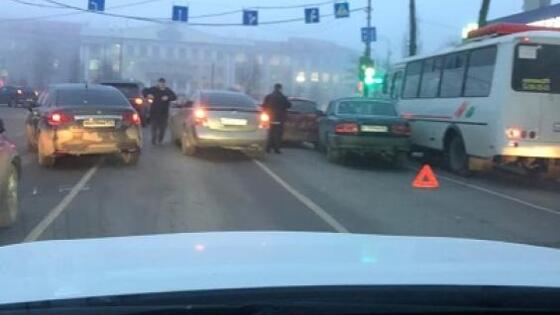 На центральной улице Курска несколько минут назад произошло ДТП. Как сообщают очевидцы в паблике «Атокадр_46», несколько минут назад они стали свидетелями большой пробки на улице Ленина. В ДТП попали сразу несколько легковых автомобилей и ПАЗик. Будьте внимательны! Из-за возникшего затруднения в движении, планируйте маршрут заранее. Фото «Атокадр_46»