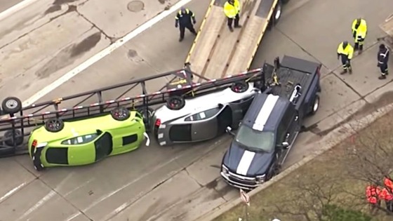 Полиция разбирается в обстоятельствах аварии, произошедшей на шоссе I-75 в Детройте. Пикап Ford F-350 не справился с управлением и трехосный прицеп с парой новеньких Mustang Shelby GT500, который он тянул за собой, завалился на бок. По счастливому стечению обстоятельств в ДТП никто не пострадал, а спорткары отделались лишь незначительными повреждениями. Посмотрите на аварию из «Пункта назначения» в реальной жизни Наклейки на кузовах Mustang Shelby GT500 указывают на то, что они совершенно новые и, по всей видимости, их везли клиентам. Каждый автомобиль стоит минимум 74 тысячи долларов (4,6 миллиона рублей), причем у спорткара салатового цвета Grabber Lime можно заметить карбоновое антикрыло – за эту опцию заказчик заплатит еще 18,5 тысячи долларов (более миллиона рублей). Из-за инцидента полиция ограничила движение по трассе для проведения операции по спасению спорткаров. Для этого на место происшествия были вызваны эвакуаторы. Mustang Shelby GT500 -- самая мощная серийная модель Ford. Она комплектуется компрессорным мотором V8 объемом 5,2 литра мощностью более 700 лошадиных сил. Пару агрегату составляет «робот», причем Mustang получил такую трансмиссию впервые. С нуля до 97 километров в час Mustang Shelby GT500 разгоняется за три секунды, а четверть мили (402 метра) проезжает менее, чем за 11 секунд. Видео: Local 4 | WDIV Красивые аварии