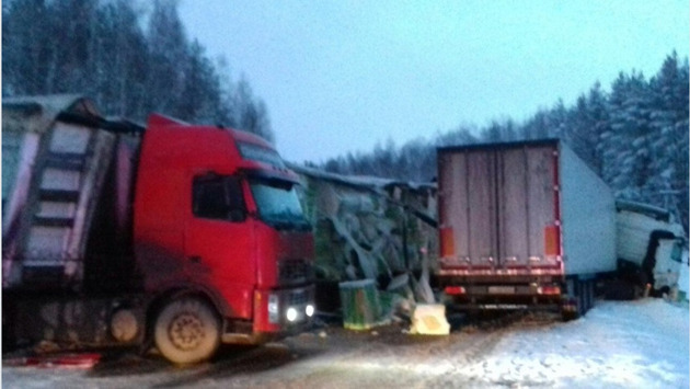 Госпитализирован один из водителей. Вчера, 19 декабря, в 14:40 на 698 км автодороги Кострома-Шарья-Киров-Пермь в Белохолуницком районе столкнулись грузовые автомобили «Вольво» и «Камаз». Как сообщили в ГИБДД Кировской области, в аварии пострадал 30-летний водитель «Камаза». Мужчину с травмами госпитализировали.