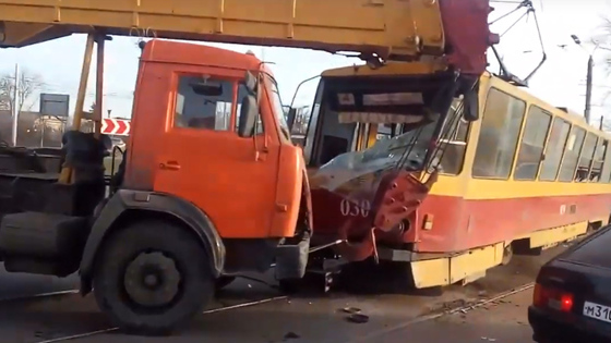 В Курске столкнулись автокран и трамвай. Пострадал пассажир общественного транспорта — 66-летняя женщина сломала ногу. Инцидент произошел на улице Добролюбова в пятницу, 20 декабря. После столкновения, трамвай сошел с рельсов, у него покосились пол и крыша. Водитель и вагоновожатая не пострадали. Виновник аварии официально не объявлен. Очевидцы считают, что это водитель автокрана, не пропустивший трамвай.