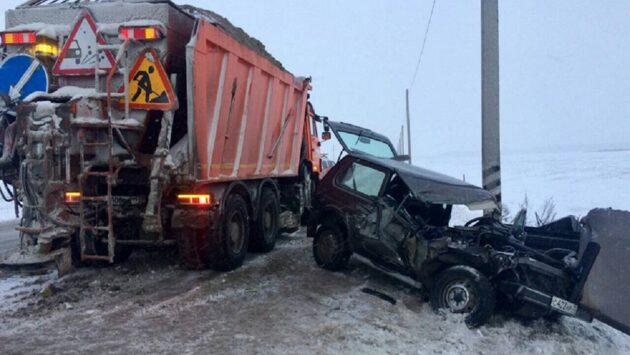 Сегодня, 22 декабря, с самого утра трассы Тюменской области окутаны снегом. Из-за непогоды на дорогах случилось два смертельных ДТП, сообщили ИА «Уральский меридиан» в пресс-службе регионального УМВД. На 135-м ккм федеральной автодороги Курган-Тюмень в Исетском районе столкнулись две «Нивы». Один из водителей решил обогнать дорожную технику, выехал на встречную полосу движения и столкнулся с автомобилем. От удара встречную «Ниву» отбросило на лопату автогрейдера, а затем в столб. Водитель этой машины, мужчина 57-ми лет, скончался на месте. На 113-м километре федеральной автодороги Тюмень-Омск в Заводоуковском районе друг в друга врезались Mitsubishi Lancer и снова «Нива». Причина аварии такая же, что и в первом случае. Водитель отечественного авто погиб на месте. Фото: пресс-служба УМВД по Тюменской области Фото превью: пресс-служба УМВД по Тюменской области