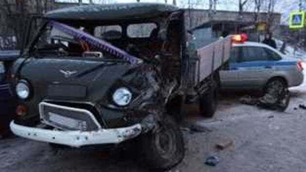 В аварии, которая произошла в субботу в Тотемском районе, пострадали два человека По предварительным данным, около 7.50 в окрестностях поселка Мясокомбината 48-летний водитель небольшого грузовика УАЗ выехал на полосу встречного движения. В результате лобового столкновения с КАМАЗом, который двигался по встречной полосе, УАЗ отбросило на два автомобиля, которые стояли на обочине - ВАЗ-2108 и спецавтомобиль ГИБДД «Лада Гранта». В результате аварии водитель УАЗа получил серьезные травы и был госпитализирован. В больницу также доставили 22-летнюю пассажирку КАМАЗа. Врачи подозревают у нее травму колена. После аварии водителей автомобилей направили на медосвидетельствование. Шофер КАМАЗа оказался пьян. «Содержание паров алкоголя в выдыхаемом нарушителем воздухе составило порядка 0,90 мг/л. В отношении нарушителя составлены материалы для привлечения к административной ответственности», - сообщает пресс-служба регионального управления УМВД. Помимо этого, сотрудники ГИБДД в субботу, 28 декабря, зафиксировали большое количество аварий. Уже к 11 утра в регионе произошло семь ДТП, в которых пострадали 12 человек. В связи с осложнениями погодных условий сотрудники Госавтоинспекции призывают водителей при управлении транспортными средствами быть предельно внимательными и осторожными.