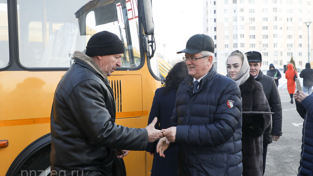 Ключи от 17 новых школьных автобусов губернатор Пензенской области вручил представителям муниципальных образований 28 декабря. Новый транспорт будет направлен в Пензу, Башмаковский, Бековский, Бессоновский, Городищенский, Камешкирский, Колышлейский, Кузнецкий, Малосердобинский, Неверкинский, Никольский, Тамалинский, Шемышейский районы, а также в Головинщинскую и Неверкинскую спецшколы. В ходе торжественной церемонии Иван Белозерцев отметил, что по нацпроекту «Образование» в этом году закуплено необходимое количество автобусов для школ области. «К месту назначения сегодня отправятся 17, еще партия проходит процедуру оформления документов», — сказал он. На мероприятии губернатор сделал акцент на необходимости строгого соблюдения ПДД при перевозке детей. Он лично пообщался со всеми водителями, осмотрел салоны транспортных средств, узнал количество перевозимых детей и протяженность маршрутов. Напомним, что за счет федерального бюджета в этом году для региона приобретены 49 школьных автобусов различной вместимости. На данные цели израсходованы 32,4 млн. рублей. Фотография: pnzreg.ru (1, 2, 3)