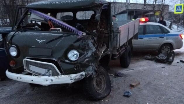 Авария произошла сегодня около 8 утра в Тотемском районе. В поселке Мясокомбината УАЗ, выехал на встречку и врезался в КАМАЗ. После этого отечественную легковушку отбросило на две автомашины, стоявшие на обочине. Одна из них - «Лада Гранта» является спецтранспортом ГИБДД. В результате ДТП 48-летнего водителя УАЗ госпитализировали с различными травмами. В больницу отправили также 23-летнюю пассажирку КАМАЗа. Сотрудники ДПС установили, что 33-летний водитель грузовика находился в состоянии опьянения. Содержание паров алкоголя в выдыхаемом нарушителем воздухе составило порядка 0,90 мг/л. В отношении мужчины составлены материалы об административной ответственности.