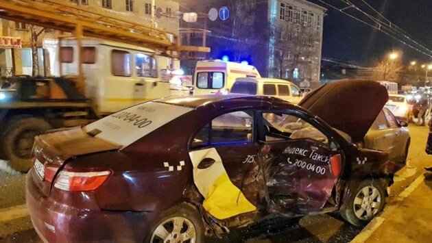 Авария с тремя автомобилями, одним из которых была машина такси, произошла в Советском районе вечером 27 декабря. Фотографиями с места происшествия поделились очевидцы в соцсетях. ДТП случилось на улице Ванеева. «Такси в хлам», — пишут очевидцы. На место происшествия прибыли несколько машин скорой помощи, а также полиция и сотрудники МЧС. Обстоятельства случившегося выясняются. Погибших, по данным МЧС, нет. Автомобиль такси, принадлежащий компании «Яндекс», получил серьезные повреждения. Напомним, два года лишения свободы грозит водителю внедорожника, сбившему ребенка на Автозаводе. Фото: Регион-52