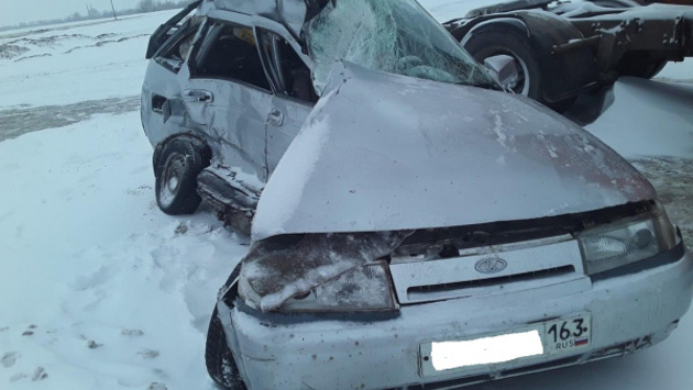 ДТП произошло из-за сильного ветра. Накануне, 31 декабря, в Исаклинском районе произошло смертельное ДТП. В первом часу дня 56-летний водитель ехал на "двенадцатой" по автодороге М5 "Урал". На 1151 километре он не смог справиться с управлением и вылетел на встречку, где столкнулся с грузовиком Volvo с полуприцепом. ⁃ В результате аварии на месте скончался владелец легковушки, - сообщили в ГУ МВД России по Самарской области. Сейчас по данному факту проводится проверка. Известно, что авария произошла из-за сильного снегопада, обрушившегося на Самарскую область. Фото: ГУ МВД России по Самарской области