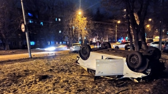 В Калуге в ночь на Рождество перевернулся автомобиль
