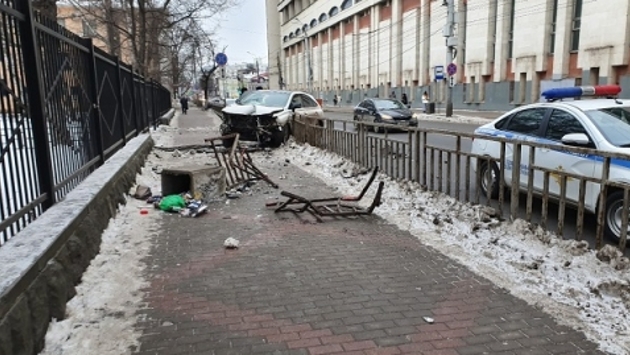 Машина снесла тротуарное ограждение у лицея в Нижнем Новгороде