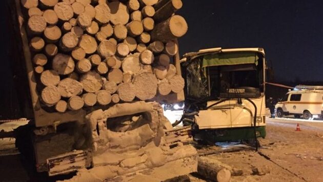 Происшествие с участием пассажирского автобуса ЛиАЗ и большегруза Mercedes-Benz случилось ровно год назад на трассе Сыктывкар — Троицко-Печорск. Водитель грузовика при повороте не предоставил преимущество автобусу и столкнулся с ним. В момент ДТП в салоне находились 32 пассажира. В больницу попали восемь человек. Фото ГИБДД Коми По факту произошедшего возбудили уголовное дело. 54-летнего водителя лесовоза привлекли к административной ответственности за нарушение правил перевозки грузов, нечитаемые регистрационные госзнаки и неисправность на одной из осей машины. После инцидента нелегальную дорогу, куда заворачивал грузовик в объезд весового контроля, закрыли. Как сообщили в прокуратуре Сыктывкара, установлено, что ДТП произошло в результате нарушения водителем грузового автомобиля правил дорожного движения при выполнении маневра на второстепенную дорогу и непредоставлении преимущества в движении пассажирскому автобусу. Из-за столкновения машин 30 пассажиров автобуса получили телесные повреждения. Однако тяжкий вред здоровью у пострадавших не установлен. В связи с этим прекращено уголовное преследование в отношении водителя лесовоза, поскольку в его действиях отсутствует состав преступления.
