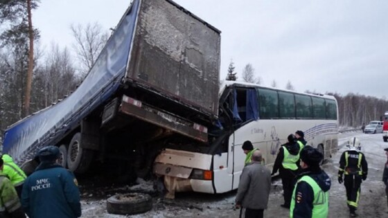 В Пермском крае возбуждено уголовное дело после ДТП с автобусом, в котором находились подростки ехали с соревнований. Авария произошла в пятницу на 472-м километре федеральной трассы М-7 «Волга». Легковой автомобиль стал обгонять большегруз. При этом водитель двигавшейся по встречной полосе фуры, чтобы избежать столкновения, начал торможение, из-за чего прицеп вынесло на полосу встречного движения. В результате столкнулись семь машин, в том числе фура и автобус, в котором и ехали подростки. «В результате дорожно-транспортного происшествия пострадали пять человек, один из них несовершеннолетний 2007 года рождения. По данному факту возбуждено уголовное дело по части 1 статьи 264 УК РФ („Нарушение правил дорожного движения и эксплуатации транспортных средств“). Ведется следствие», — уточнили в ведомстве.