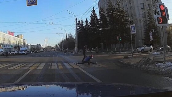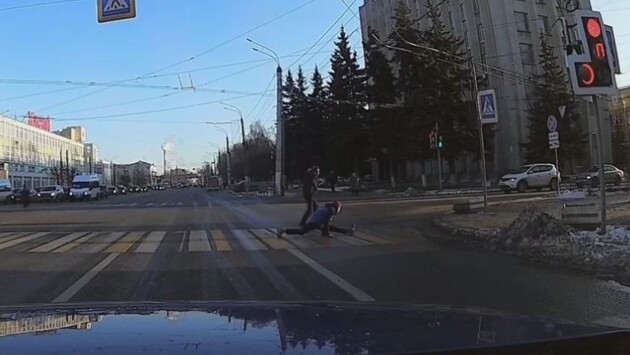 В Твери парень сел на шпагат на пешеходном переходе