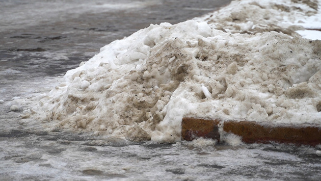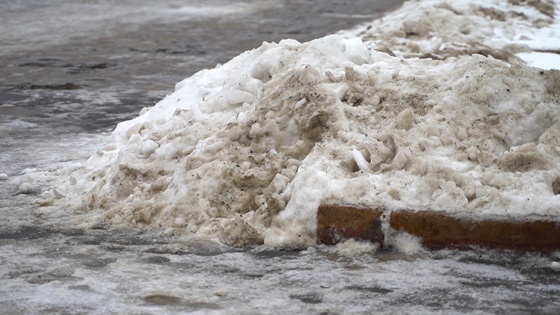 На улице Чугуевского в Ижевске вода вышла на проезжую часть и тротуар