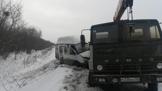 Маршрутка врезалась в «КамАЗ» на омской трассе
