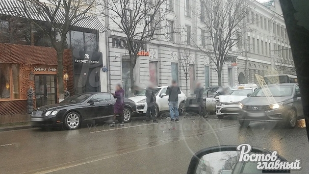Многомиллионное ДТП. В Центре Ростова BMW X6 протаранил Bentley, Porsche, Land Rover, Toyota и два такси