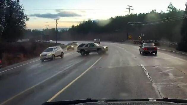 Удачливый автомобилист избежал нескольких столкновений на канадской автотрассе