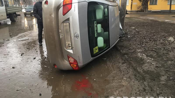 Перевернувшаяся после ДТП иномарка врезалась в столб в Липецке