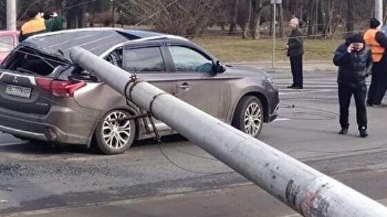 «На улице Научной упали две опоры контактных сетей. Одна опора повредила легковой автомобиль, вторая — троллейбус. Пострадавших нет», — говорится в материале. На месте аварии работают бригады «Львовэлектротранса» и полиция.