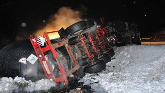 Фура с горячим битумом опрокинулась под Дзержинском минувшей ночью после столкновения с иномаркой. Авария случилась на 366-м километре трассы М-7 у поворота на Володарск. Об этом сообщает Дзержинское телевидение. По предварительным данным, фура ехала в сторону Москвы, когда на дорогу вылетел легковой автомобиль. После касательного столкновения большегруз ушел вправо и опрокинулся. В аварии пострадал водитель автоцистерны. Кроме того, произошел разлив нефтепродуктов на площади 60 квадратных метров. Водитель иномарки отделался легким испугом. Напомним, в Автозаводском районе пьяный водитель сбил двух подростков.