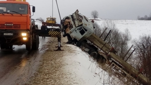 Костромской «КАМАЗ» с лесом «улетел» в кювет