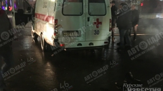 В центре Курска после ДТП перевернулась карета скорой помощи