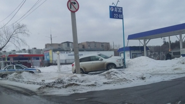 Иномарка въехала в указатель с ценами у газовой заправки в Сызрани