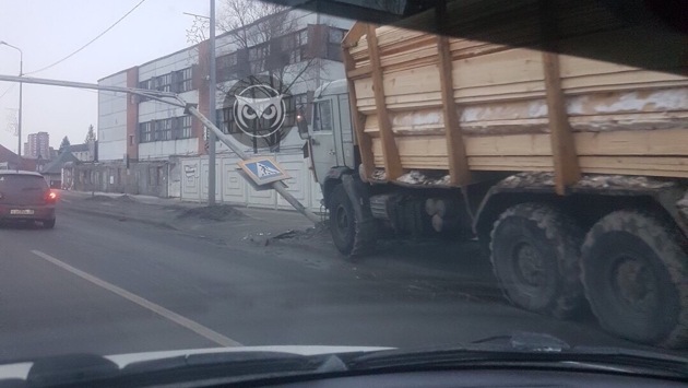 В Пензе «КамАЗ» снес знак пешеходного перехода