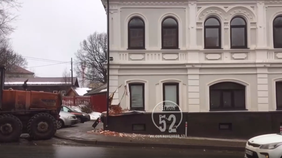 Угол исторического здания на Ильинке повредил водитель грейдера