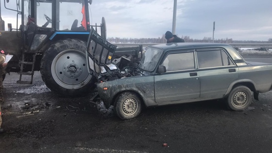 На трассе в Чебаркульском районе (Челябинская область) водитель трактора, выполняющий дорожные работы, не заметил легковое авто и смял его. В результате ДТП два человека госпитализированы. Авария произошла на 24 километре автодороги Чебаркуль-Мисяш на территории Чебаркульского района. "54-летний водитель, управляя трактором Беларус, по предварительной информации, при развороте, не убедился в безопасности маневра, совершил столкновение с автомобилем ВАЗ-2107, под управлением 65-летнего мужчины, движущегося попутно. Сотрудниками ГИБДД установлено, что водитель трактора на месте происшествия осуществлял дорожные работы", - сообщили в пресс-службе ГИБДД по Челябинской области. В результате дорожно-транспортного происшествия в автомобиле ВАЗ пострадали 2 пассажира, женщины 63 и 62 лет, которые получили телесные повреждения и были госпитализированы.