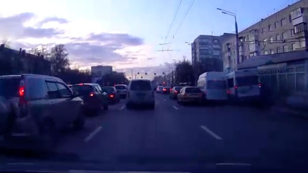 Двойной форсаж: две маршрутки устроили ДТП, борясь за место на стоянке