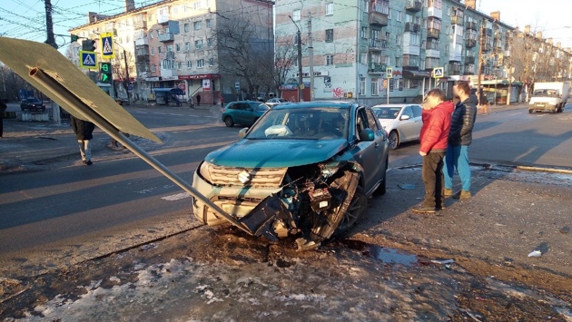 Двух женщин доставили в больницу. 22 февраля в восемь часов утра на перекрестке улицы Гагарина и проспекта Ленина в Дзержинске произошла авария. Фотографии происшествия появились в социальных сетях.По словам одного из участников ДТП, автомобиль «Kia» ехал со стороны Швейной фабрики на желтый мигающий сигнал светофора, а со стороны Центрального универмага ехал автомобиль марки «Suzuki».В итоге оба автомобиля получили серьезные повреждения. Из-за столкновения «Suzuki» врезался в дорожный знак, а корейский автомобиль вылетел на тротуар. Женщину, которая была за рулем «Suzuki», и пассажирку другого автомобиля доставили в дзержинское БСМП.