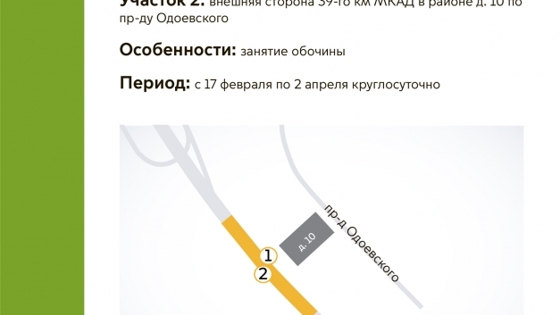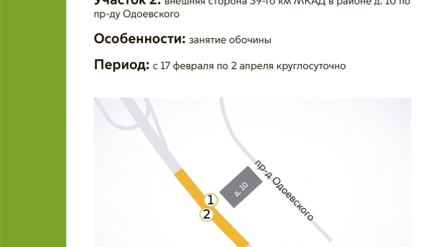 В ЮЗАО временно ограничили движение транспорта по проезду Одоевского в связи со строительством автомобильной дороги. Об этом сообщает информационный центр Транспортного комплекса столицы. Движение ограничили 17 февраля. По 2 апреля включительно круглосуточно будет ограничено движение по внутренней и внешней сторонам 39-го км МКАД в районе дома 10 по проезду Одоевского. Водителей просят быть внимательными и заранее выбирать объездные пути.