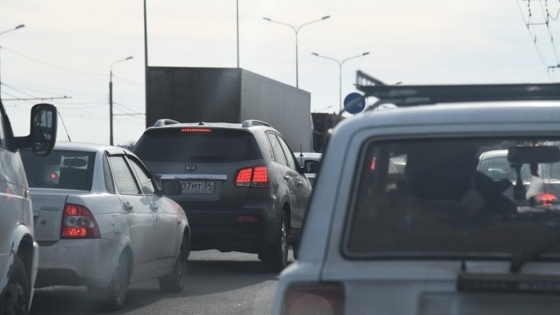 На мосту через ГЭС водители стоят в пробке по пути в Волгоград