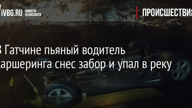 В Гатчине пьяный водитель каршеринга снес забор и упал в реку