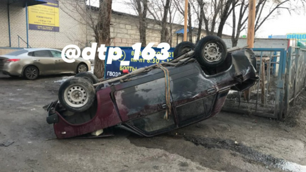 Врезался в ограждение: в Самаре на Товарной перевернулся автомобиль