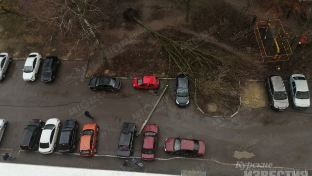 На улице Дейнеки, 5 м упало дерево на провода. В результате упали два столба, сильно поврежден "Дэу Матиз". Об этом сообщили подписчики группы "Автокадр_46".