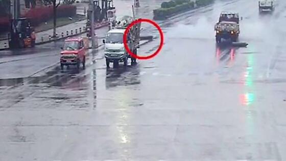 Момент выпадения из кузова грузовика двух кислородных баллонов на автомагистрали в уезде Пуцзян (провинция Чжэцзян, КНР), попал в объектив камеры наружного наблюдения, установленной над трассой. В результате инцидента один металлический цилиндр с кислородом поразил мотоциклистку, которую позже с переломом руки и ноги доставили в больницу. Полицейские задержали водителя грузовика для выяснения всех обстоятельств происшествия.